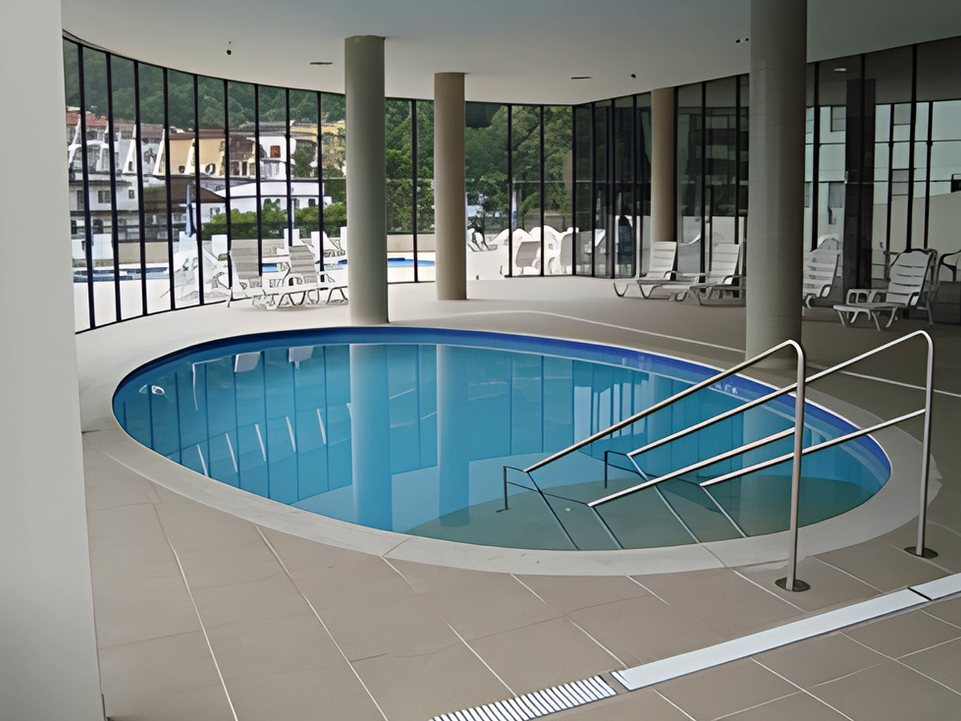 Um diferencial importante: garagem individual no subsolo, independente para cada apartamento, além de 2 (duas) piscinas, uma externa climatizada, com amplo deck, e outra interna aquecida, restaurante e mezanino panorâmicos, sala de TV e carteado, sauna úmida, brinquedoteca infantil, 3 (três) elevadores, etc.